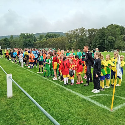 Am Mittwoch, den 10. September 2025 fand der nunmehr 18. Tag des Mädchenfußballs auf dem Sportgelände des SV Dietzhausen statt. Unter der Schirmherrschaft des Suhler Oberbürgermeisters, Herrn Andre Knapp, organisiert vom Suhler Sportbund und dem KFA Rhön-Rennsteig spielten insgesamt 15 Mannschaften mit 120 Mädels um die begehrten Pokale und Medaillen.