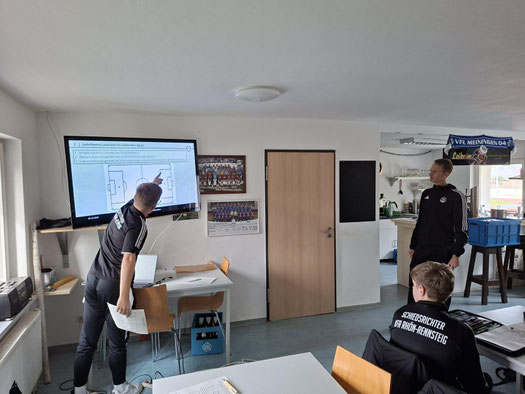 Am 16.11.2024 fand unser zweiter Lehrgang mit der Coachinggruppe im Stadion Maßfelder Weg in Meiningen statt. Der Lehrgang wurde mit zwei theoretischen und einem Praxistest gestaltet. Nach der Begrüßung der Verantwortlichen des Lehrgangs (KSO Jan Weltzien und den beiden Verantwortlichen der Coachinggruppe Nils Pfannstiel und Luis Teyral) wurde ein Regeltest, bestehend aus 20 Fragen, geschrieben. Bei diesem Test ragten vor allem die Ergebnisse von Lara Abeßer, Malte Günther und Kevin Leyh mit jeweils 35/40 Punkten hervor. Anschließend folgte der Konformitätstest, bei dem ebenfalls Kevin Leyh, aber auch Lennox Vonderlind mit die meisten Punkte, nämlich 26/30 Punkten, erreicht haben. Danach ging es nach einem kurzen, individuellen Warm-Up in den FIFA-Test (75/25). Hier konnten alle ihre läuferisch und ausdauergeprägten Fähigkeiten unter Beweis stellen. Nur bei den Wenigsten sind diesbezüglich noch Defizite vorhanden, die mit dem ein oder anderen Trainingseffekt abgeschafft werden können. Dennoch haben 8 von 10 Teilnehmern den Lauftest zweifelsfrei bestanden. Nachdem alle Tests, welche auch in dieser Form zum U20-Lehrgang in Bad Blankenburg stattfinden werden, absolviert wurden, fand nochmal eine kurze Auswertung zu den Regel- und Konformitätstests statt, sodass jeder hinterher wusste, aus welchem Grund man bei der jeweiligen Szene oder Frage Punkte liegen gelassen hatte.