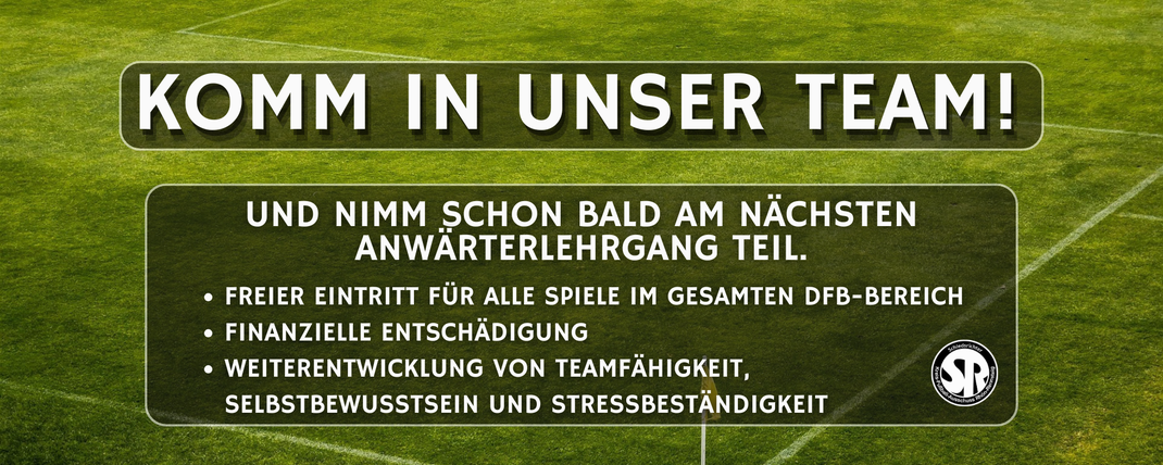 Du bist mindestens 12 Jahre alt, brennst für Fußball und möchtest Teil eines motivierten Teams werden? Dann nutze jetzt deine Chance! Als Schiedsrichter bist du direkt im Geschehen, übernimmst Verantwortung und erlebst spannende Momente auf dem Platz.